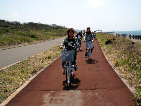 サイクリングで行ったリス村の広場では昼食をとりつつみんなではしゃぎました!