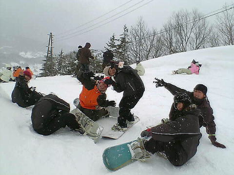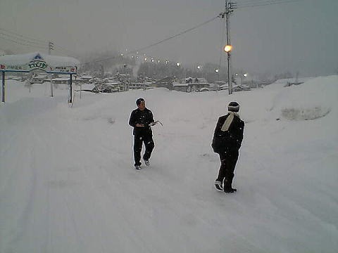 新宿を23時に出て、戸狩温泉に7時くらいに着くはずが、運転手が道に迷いなんと6時間遅れの13時着!