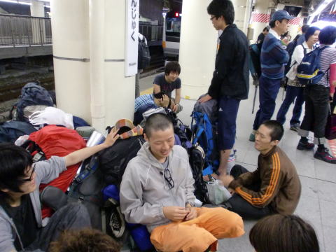 朝、新宿にて。すごいザックの量!!