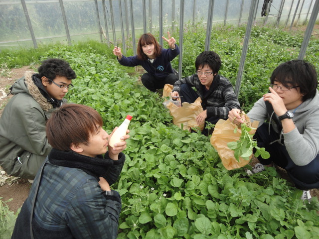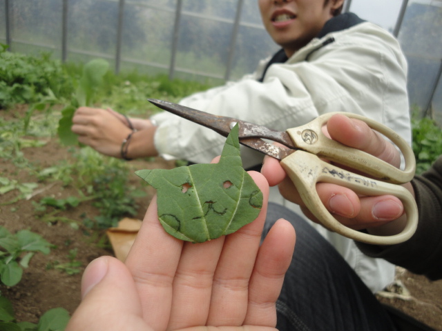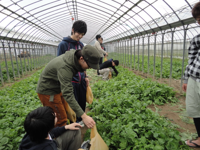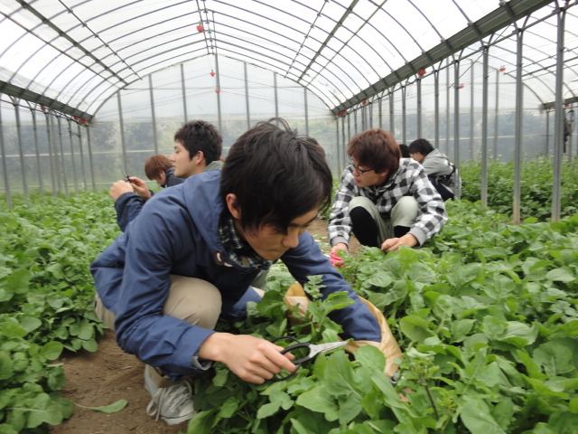 まずはみんなでルッコラ摘み。