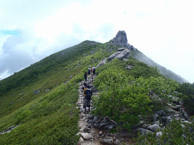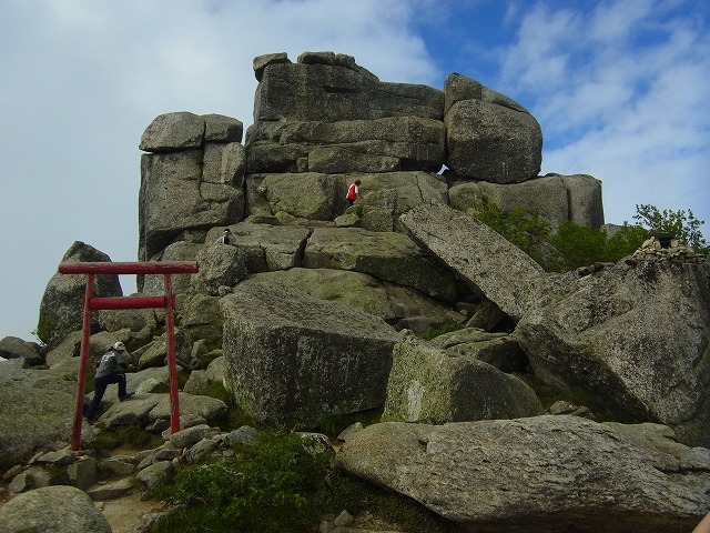 頂上付近に刈る大きな岩。