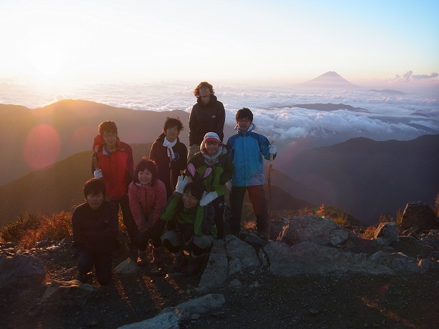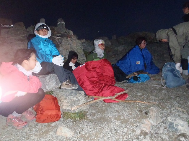 ご来光を待つ北岳隊員たち。