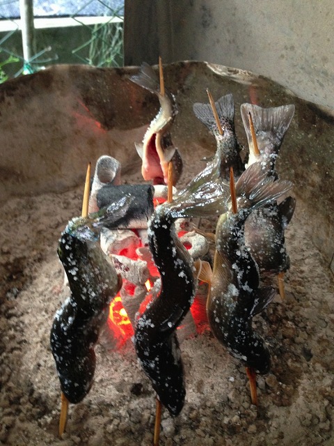 釣ったお魚は、その場でさばいて塩焼きにしてもらいます。