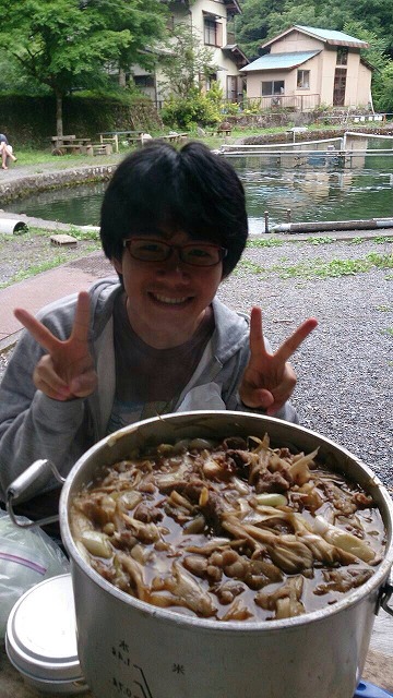 魚を焼いてもらっている間に、Dの芋煮を作りました。
