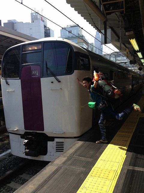 行きの特急にテンションが上がってる様子。
