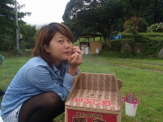 起きたら楓さん自前の段ボール燻製機が始動していました。