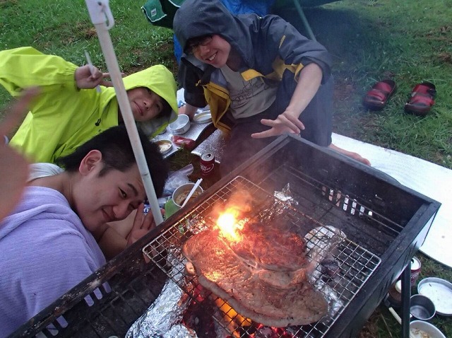 テン場に戻り、温泉に入った後はBBQです!