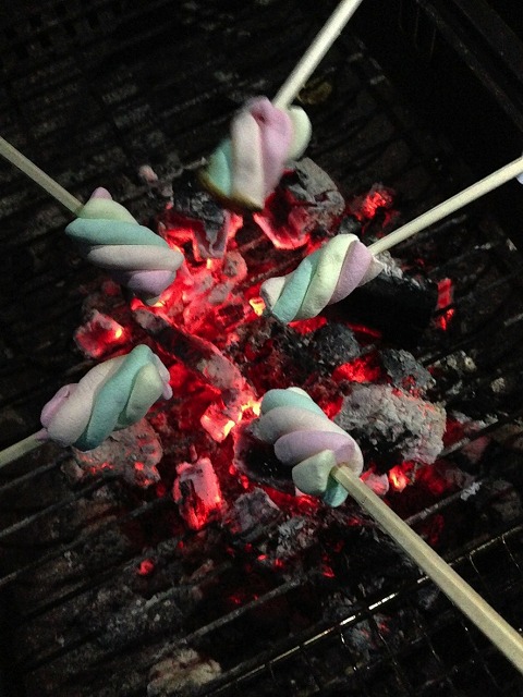 一通り食べ終えたら、マシュマロを焼きました。