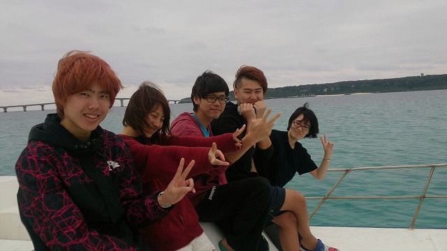 沖縄のきれいな海を船で眺める。最高ですねえ。